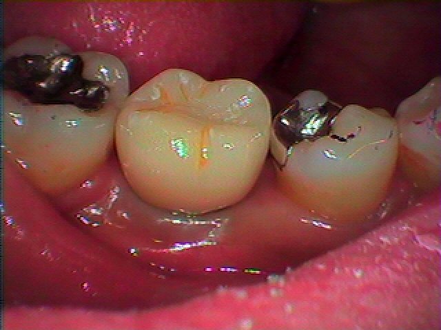 右下6番インプラント部の上部構造を作成していきます アバットメントはチタンにてカスタムオーダーにて作成し、被せはセレックオールセラミックにて作成しています