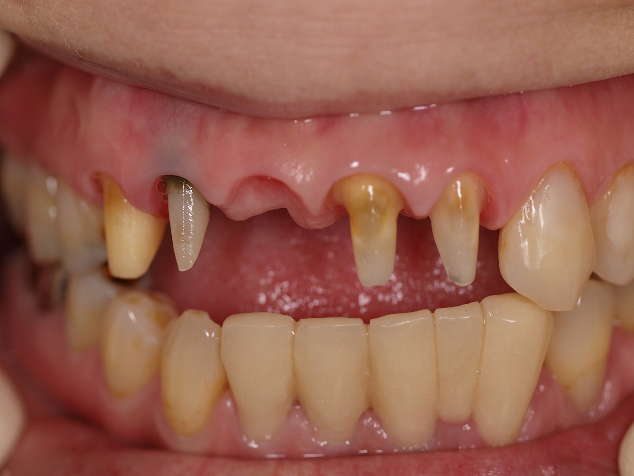 歯肉形態を付与しています 年齢からも矯正治療もなく大きく治療せざるをえません