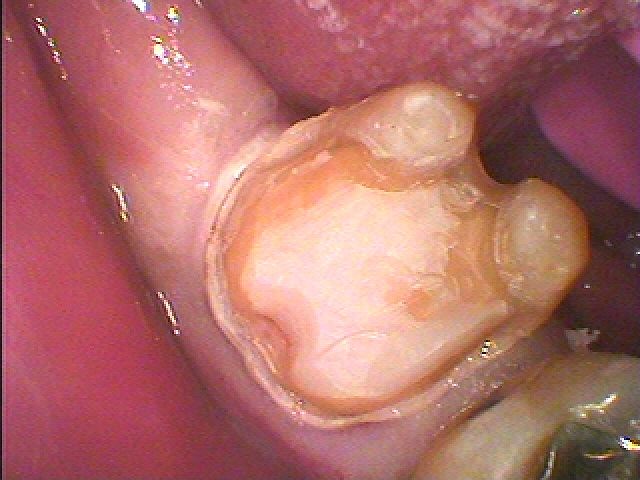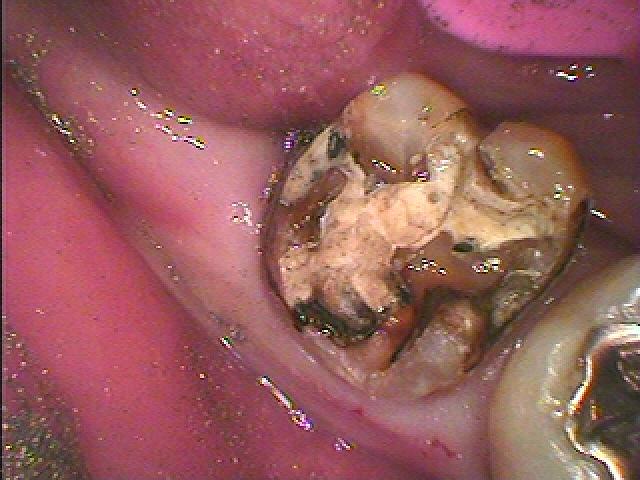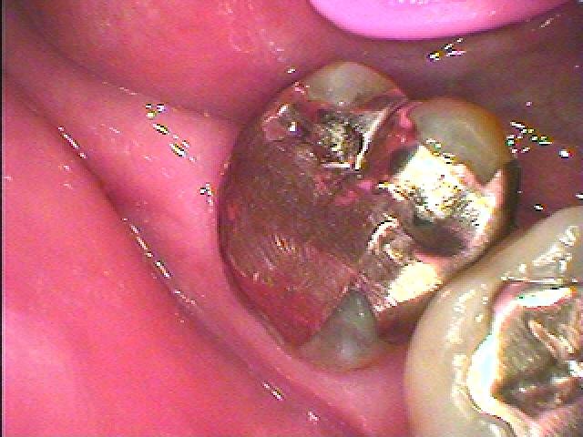 右下の奥歯の大きな銀歯を外して虫歯治療 セレックセラミック(1本2万5千円)にて本来の歯のようにきれいに仕上げていきます 40代男性