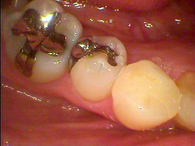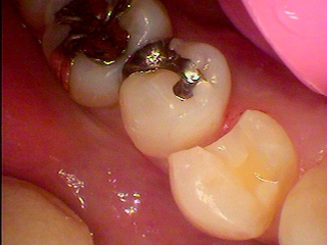 左下の銀歯を外して虫歯治療 この歯を白い本来の歯のようにしたくて来院 セラミックを用いた審美治療