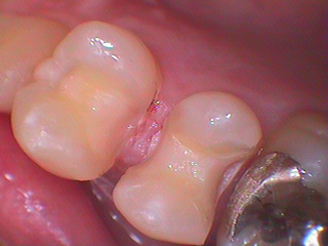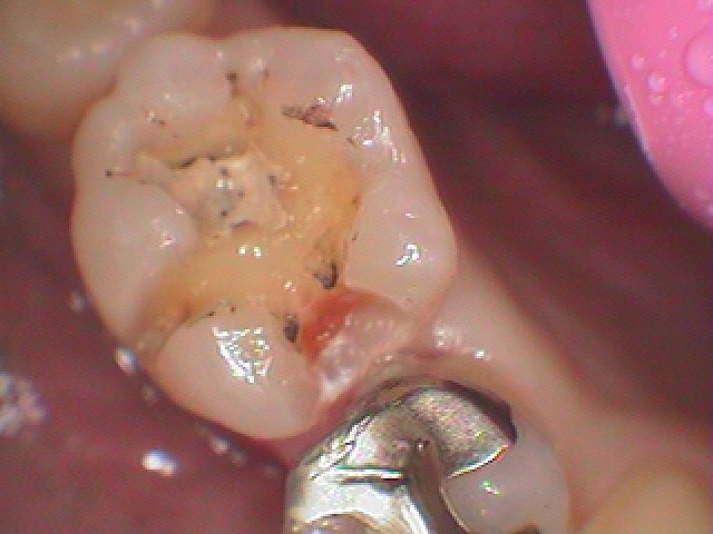 銀歯、詰めてある樹脂を外すと中が虫歯になっていました