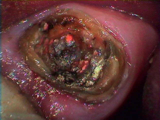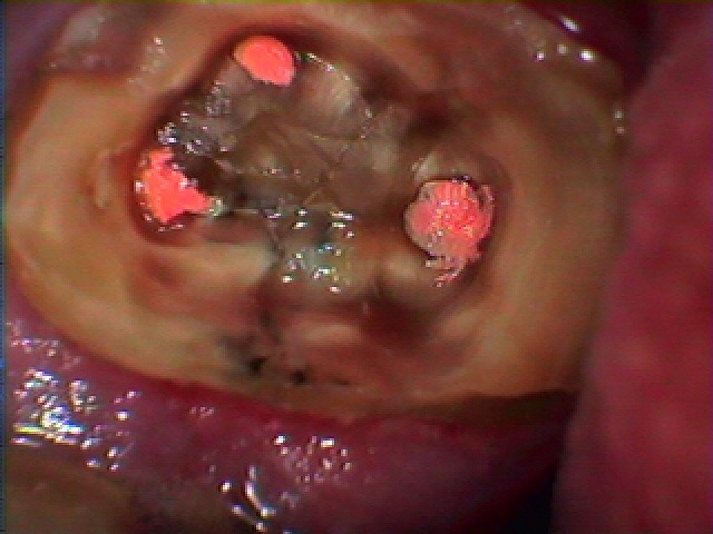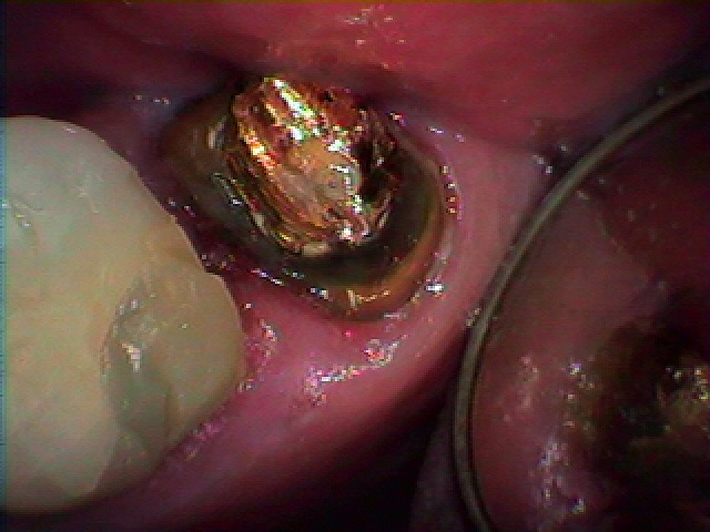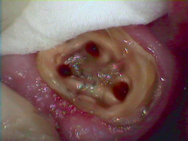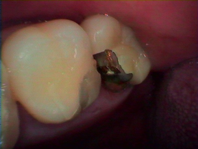 左上の最期臼歯部の破折部位が主訴で来院 佐伯区にほど近いこころ歯科クリニックの左上の7番部の臨床現場の様子 将来は抜歯の歯かもしれませんが患者さんの意向をお聞きして努めて参ります。